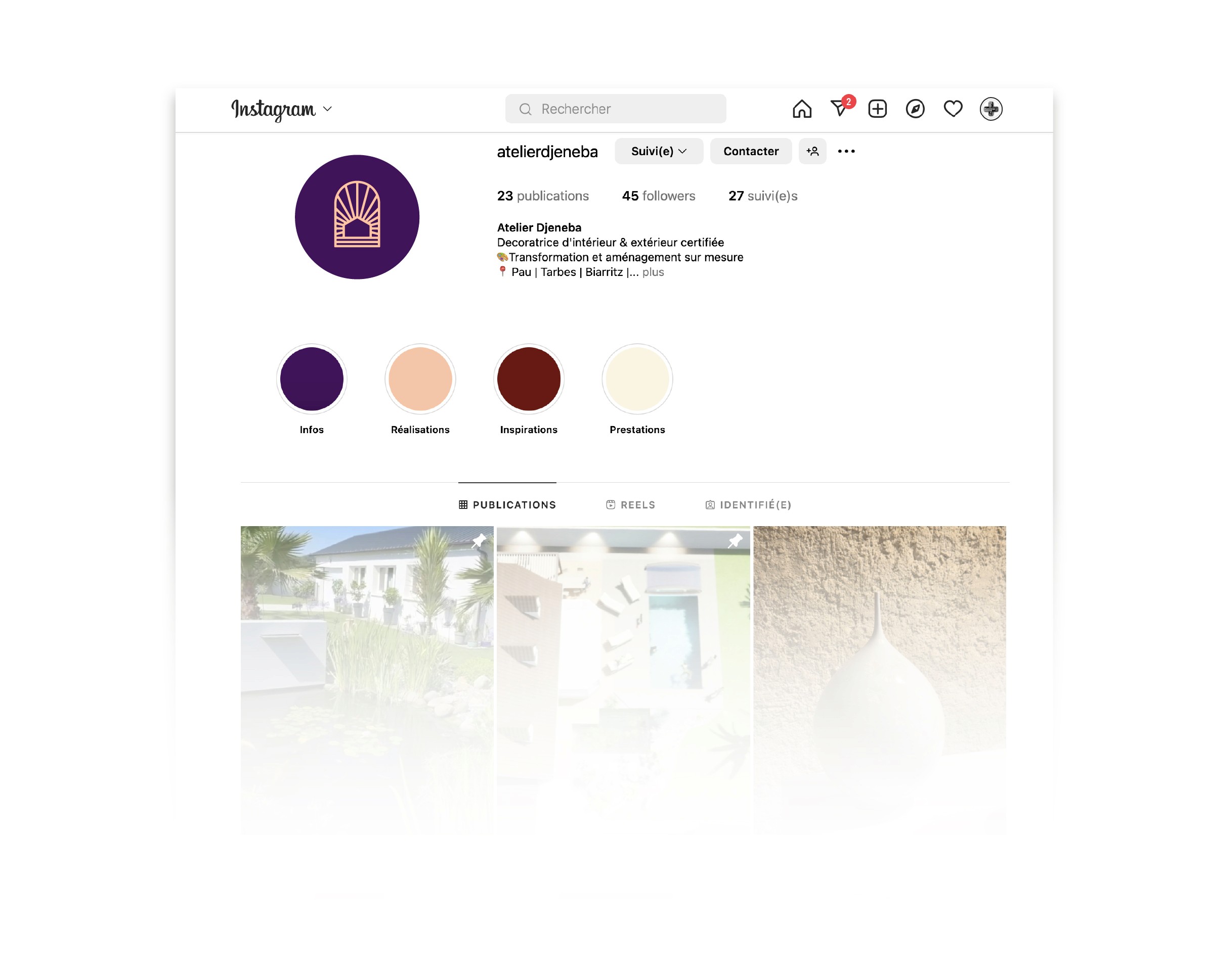 Jenny, the founder of Atelier Djeneba, a studio specializing in interior and exterior decoration, approached me to help develop her visual identity.