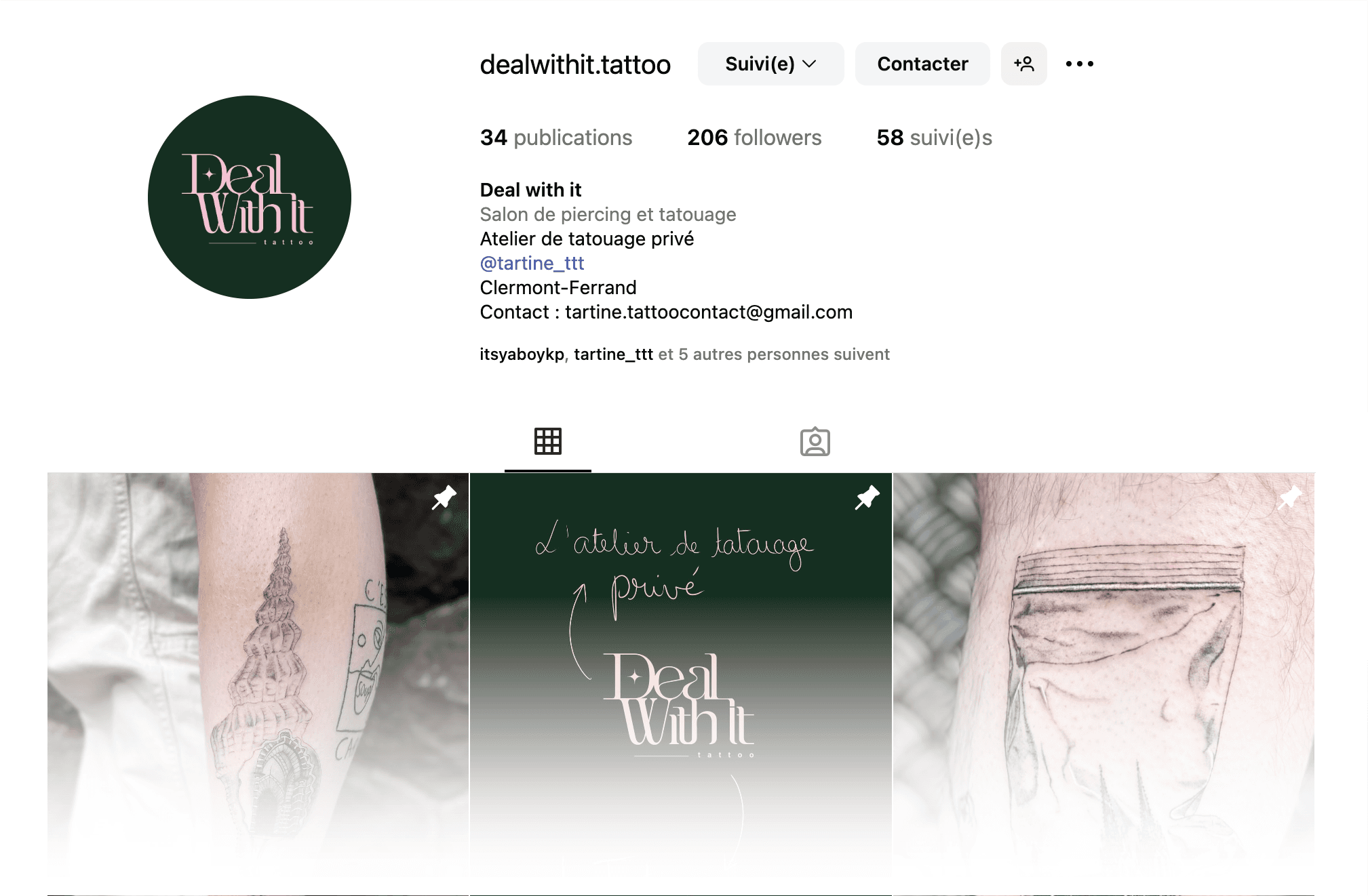 Tartine, a tattoo artist from Clermont-Ferrand, approached me to craft the visual identity of her new private studio : Deal With It.